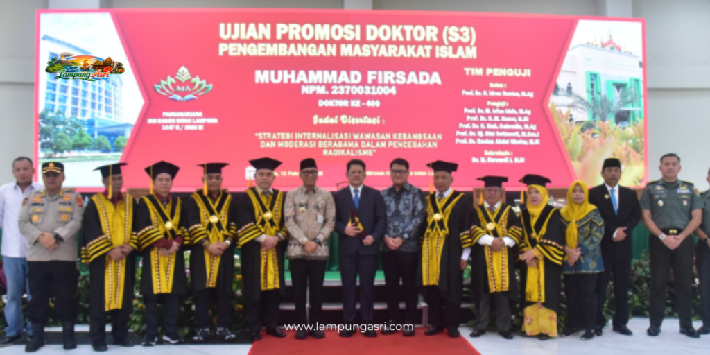 Disertasinya sangat relevan karena membahas moderasi beragama dan pencegahan radikalisasi serta terorisme. Mudah-mudahan kajian ini dapat menjadi referensi yang mendorong upaya bersama dalam menekan penyebaran radikalisme dan terorisme di Provinsi Lampung,” ujar Giri Akbar.
