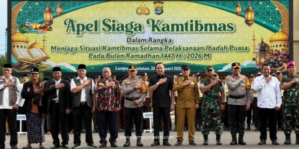 Apel Siaga dipimpin oleh Kapolda Lampung dan diikuti oleh peserta dari berbagai instansi sebagai wujud komitmen bersama dalam memberikan rasa aman dan nyaman kepada masyarakat selama Ramadan 1447 H. ( Tim Humas)