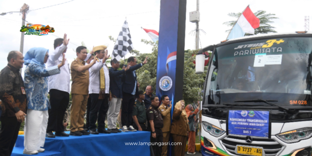 Pelepasan dan Pemberangkatan Transmigrasi Daerah Asal 2025 (Provinsi Lampung, Banten dan DKI Jakarta) dilakukan oleh Menteri Transmigrasi Republik Indonesia yang diwakili Wakil Menteri Tenaga Kerja Republik Indonesia Ir. Viva Yoga Mualadi M.Si, Gubernur Lampung yang diwakili Sekretaris Daerah Provinsi Lampung, DR. Marindo Kurniawan.