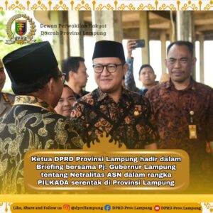 KETUA DPRD PROVINSI LAMPUNG HADIR DALAM BRIEFING BERSAMA PJ. GUBERNUR LAMPUNG TENTANG NETRALITAS ASN DALAM RANGKA PILKADA SERENTAK DI PROVINSI LAMPUNG