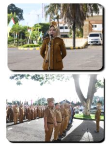 Sekretaris DPRD Provinsi Lampung, Ibu Hj. Tina Malinda, S.Sos., MM. memimpin apel pagi sekaligus Halal Bihalal bersama Pegawai di
