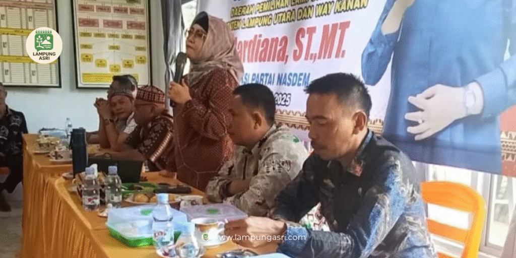 Lampung Utara, Kamis (24/7/2015) — Anggota DPRD Provinsi Lampung dari Fraksi Partai NasDem, Ir. Mardiana, ST., MT., yang juga menjabat sebagai Wakil Ketua Komisi V, menggelar kegiatan reses di Desa Sumber Tani, Kecamatan Abung Pekurun, Kabupaten Lampung Utara, pada Kamis (24/7/2025) pukul 13.00 WIB.