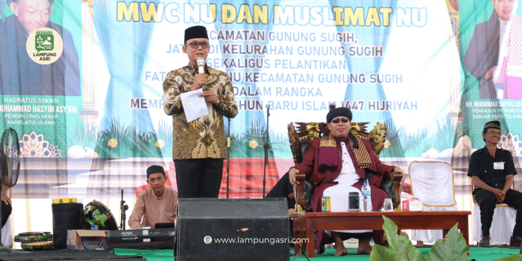 Bupati Lampung Tengah, Ardito Wijaya, menghadiri pengajian Minggu Kliwon yang diselenggarakan oleh Majelis Wakil Cabang Nahdlatul Ulama (MWC NU) dan Muslimat NU Kecamatan Gunung Sugih. Acara berlangsung di Banjar Mulyo, Kelurahan Gunung Sugih, pada Minggu (27/07/2025). Selain Bupati Ardito Wijaya, hadir pula anggota DPRD Provinsi Lampung, Abdullah Surajaya; anggota DPRD Kabupaten Lampung Tengah, Indra Jaya; penceramah KH. Nurahmad Sayfulloh dari Tulang Bawang; Camat Gunung Sugih serta Lurah Gunung Sugih.
