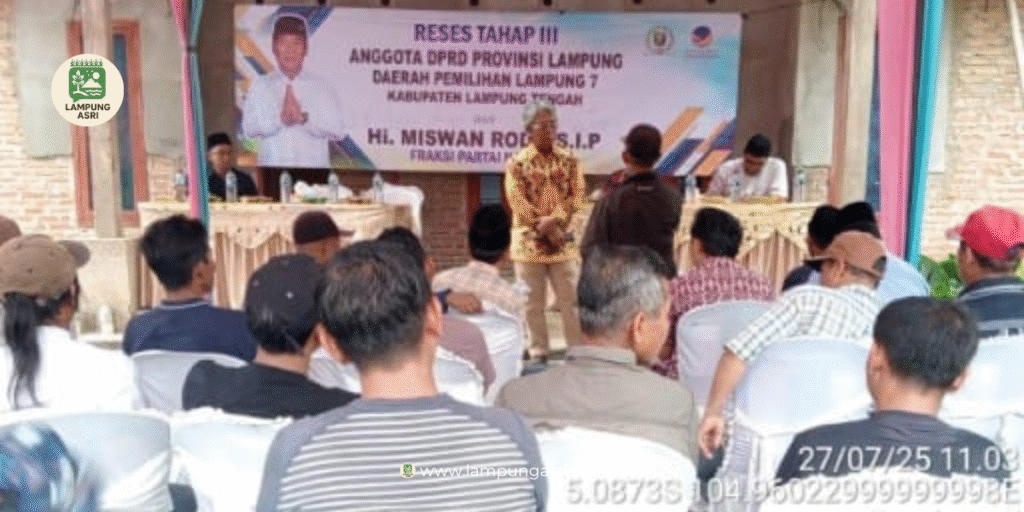 Lampung Tengah – Dalam upaya memperkuat komunikasi dan menjembatani kebutuhan masyarakat dengan pemerintah, Anggota DPRD Provinsi Lampung, Miswan Rody, menggelar kegiatan reses atau serap aspirasi masyarakat Kampung Bandar Sari, Kecamatan Padang Ratu, Minggu (27/7).